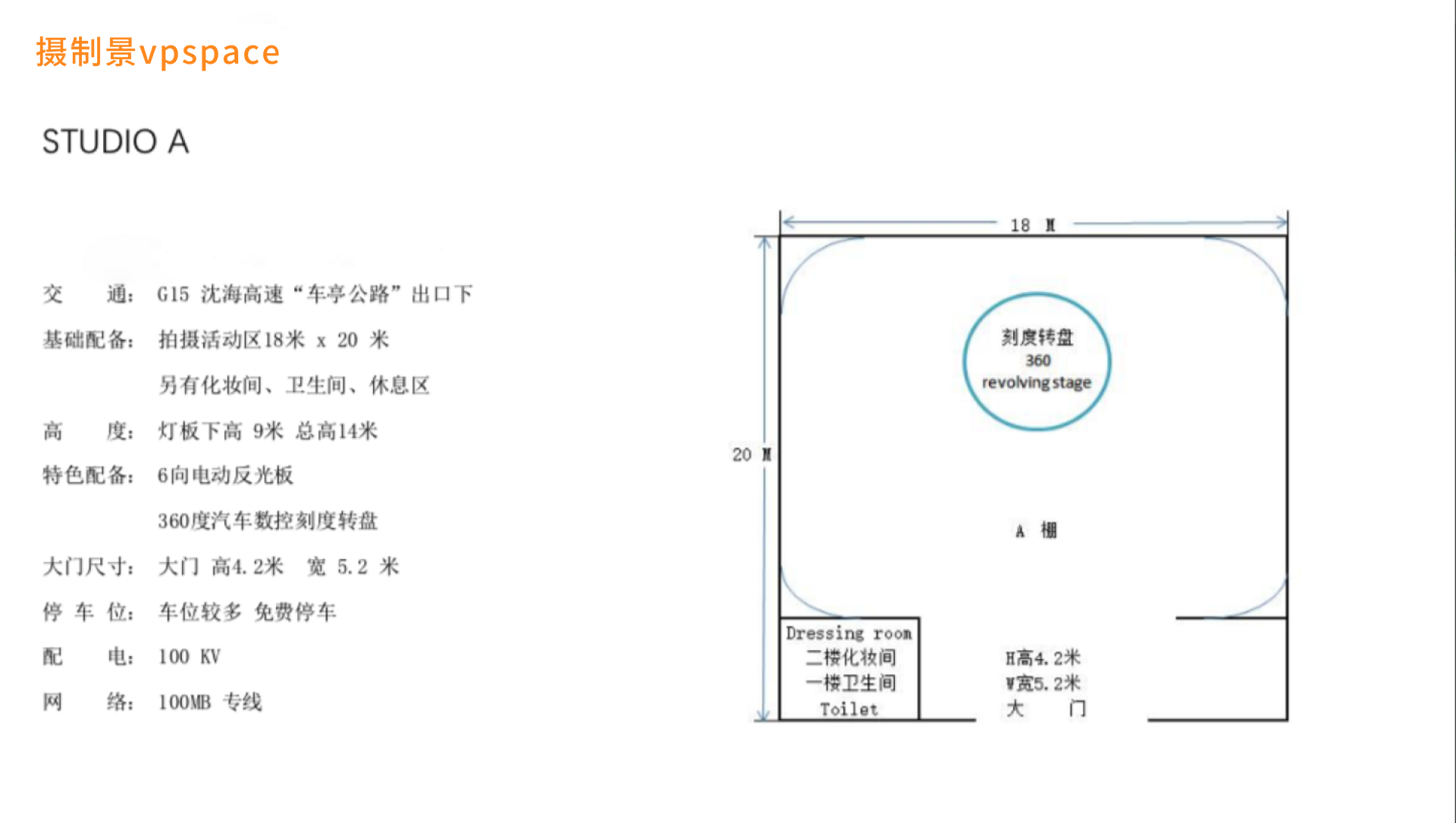 长度20米X宽度18米 ,高 14米, 360平米 顶布12X8米 (刻度转盘直径5米 精确控制旋转角度)